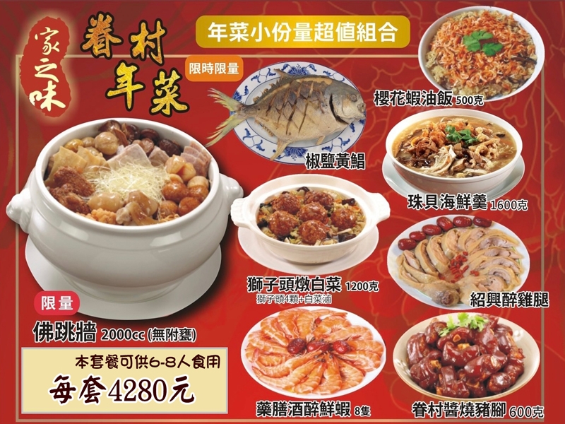 - 商品名稱:家之味年菜小套餐請注意!目前下單農曆新年前【無法到貨】目前訂單出貨日期為2/25
